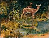 This elegant coffee table book depicts native wildlife, colorful inhabitants and major events in the 10,000-year history of Useppa Island in Southwest Florida. More than 80 vibrant paintings by John richly complement the sensitive, lyrical writing of novelist and historian Dale Ludwig. Experience the island's varied wildlife; be there when the Calusa Indians arrive; pirates paid a visit; the Victorians went tarpon fishing, and the CIA trained for the "Bay of Pigs" invasion; right through to the present day. Useppa A Passage in Time is a limited edition package of only 650 comprised of a leather-bound, numbered book, signed by the author and the artist and a beautiful signed and numbered, limited edition print. Discerningly priced at $599.00, it is currently available. Click here to go to the UseppaPassages Website. |