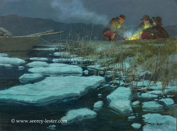 This painting of John's, depicts an incident In 1886, when three thieves stole Theodore Roosevelt's boat. You can read the amazing story of how TR brought them to justice, in John's book.