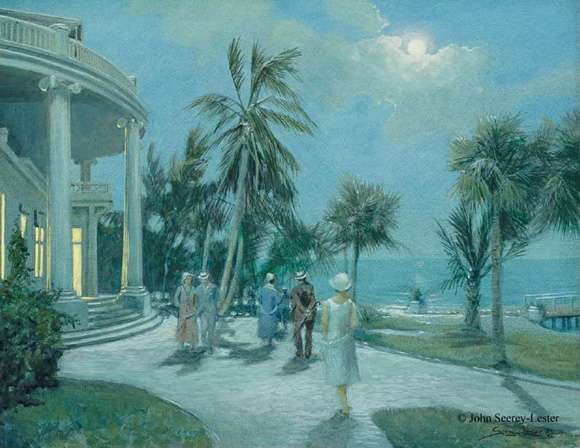 moonlight in front of the Useppa Inn,
