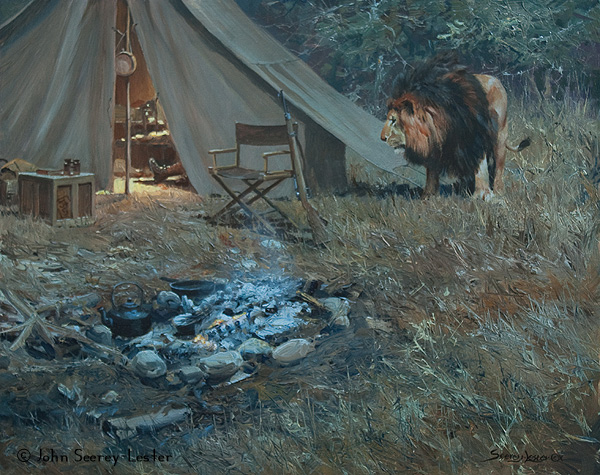 lion sauntered out of the scrub behind his camp. Trapped in his