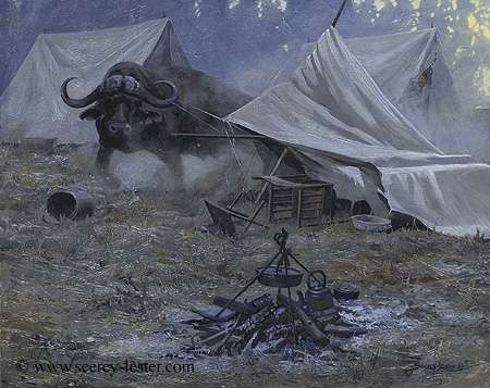 silence is broken as an angry cape buffalo charges into the unsuspecting