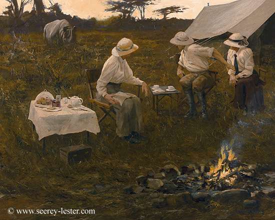 Seated is the dashing and eccentric white hunter, Fritz Shindelar