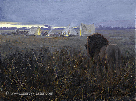 Plains near Nairobi. The safari has traveled by ox wagon from