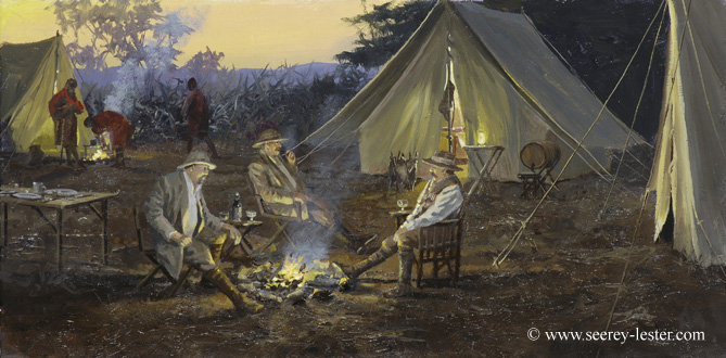 in my painting, partaking of a sundowner before dinner, are discussing